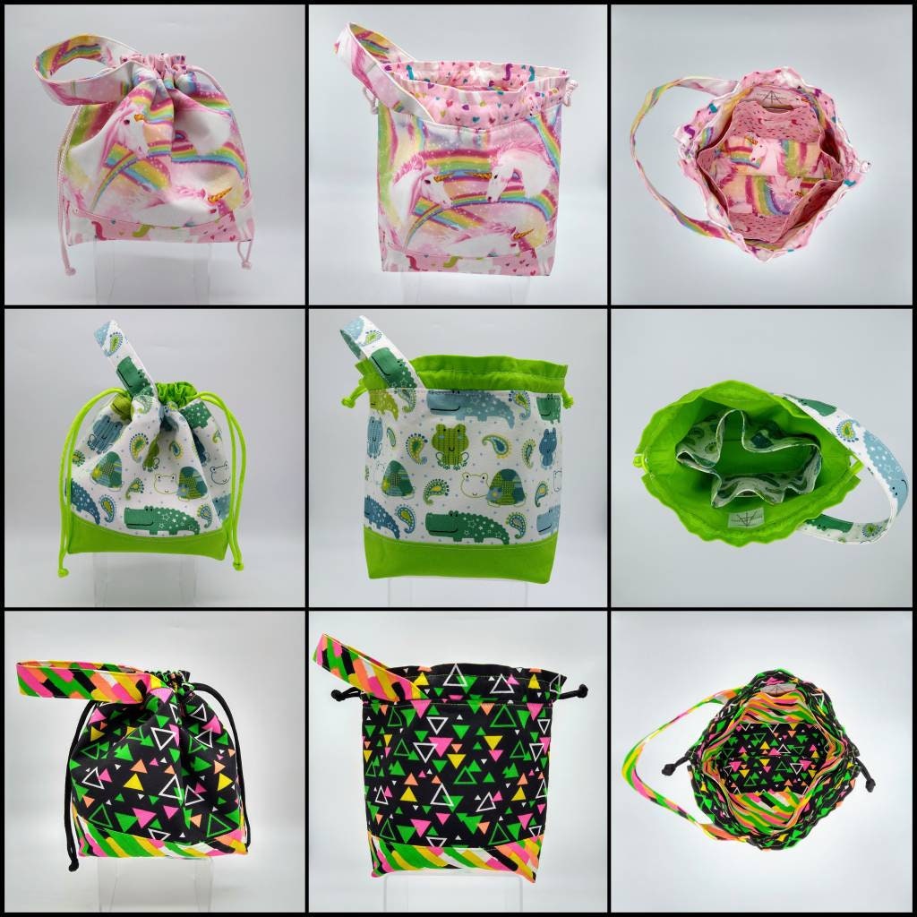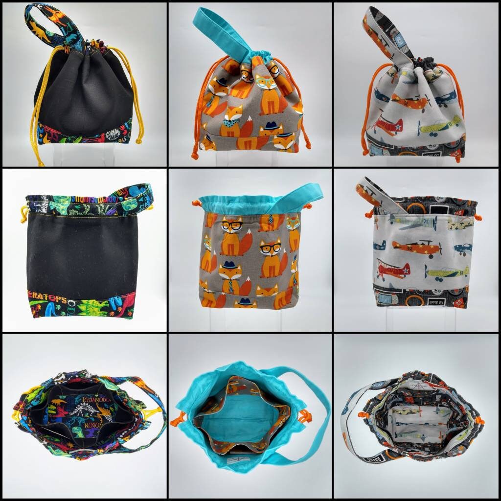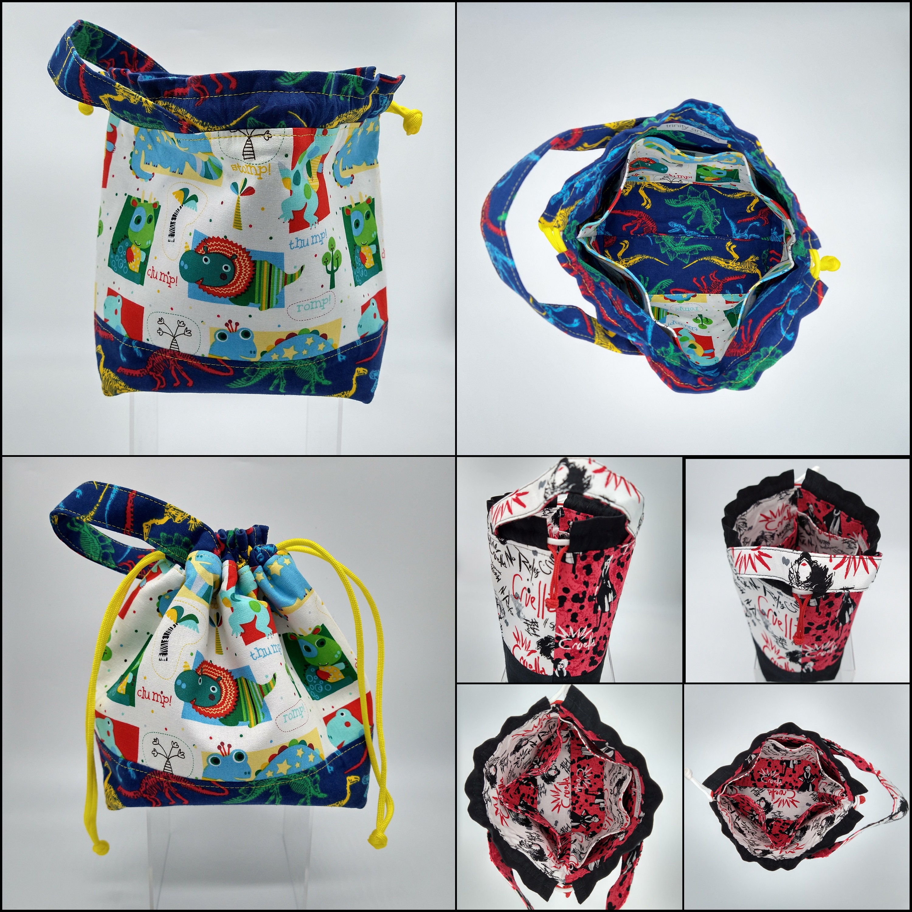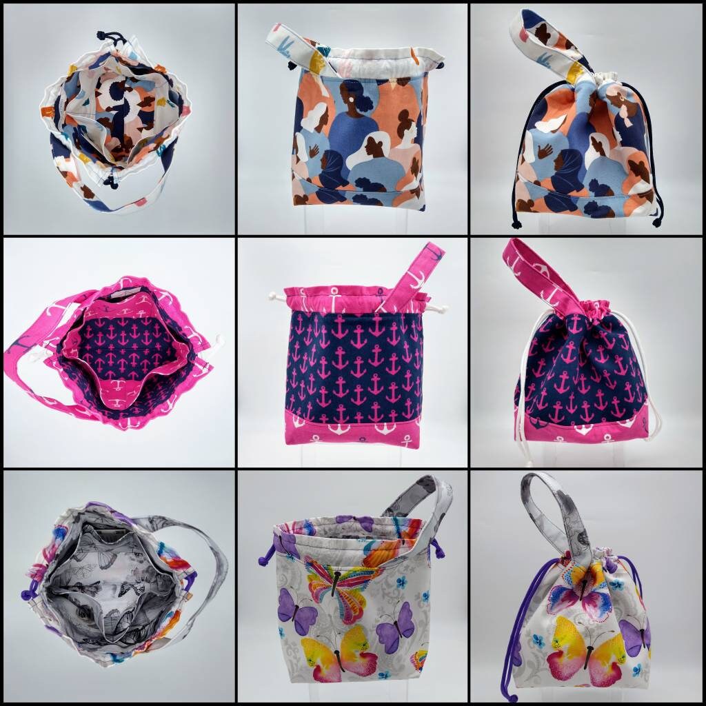Mini Drawstring Pouches with Interior Pockets and Carrying Handle