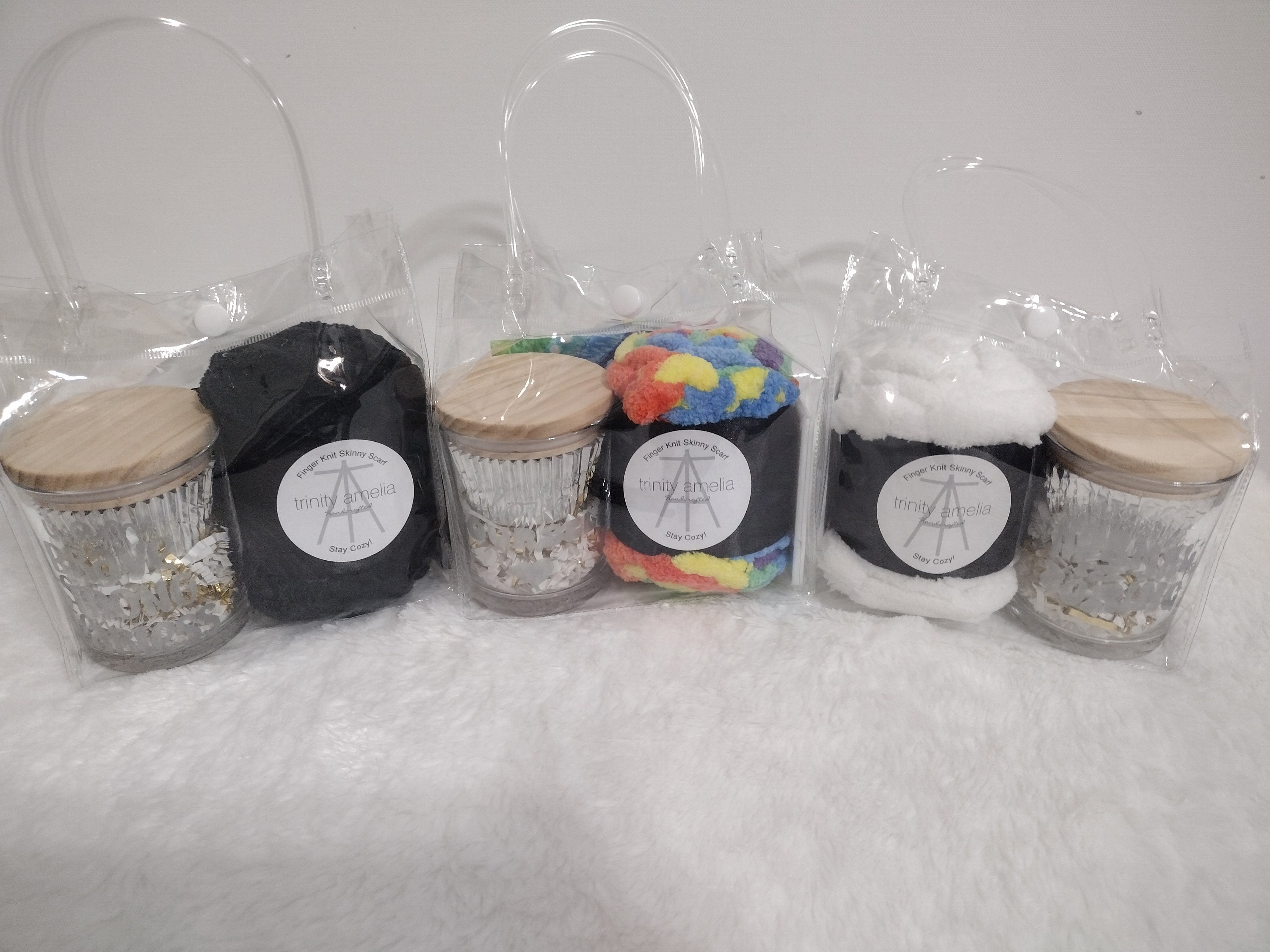 Mini, skinny scarf, finger knit with chunky yarn in black, gray, white or rainbow